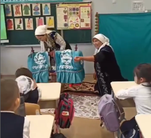 Әжелер «Бесікке салу ізгі дәстүр» тақырыбында оқушыларға бесіктің қадір қасиетін айтып түсіндірді. Бесікті отпен аластап алып, бесіктің қажетті бау-шуларды, шүмек-түбек, маталар мен өзге де заттарымен оқушыларға таныстырды. «Тыштырма» рәсімін жасап, бесіктің түбек салынатын тесігінен өткізіп, балаларға тәтті үлестіріп берді.