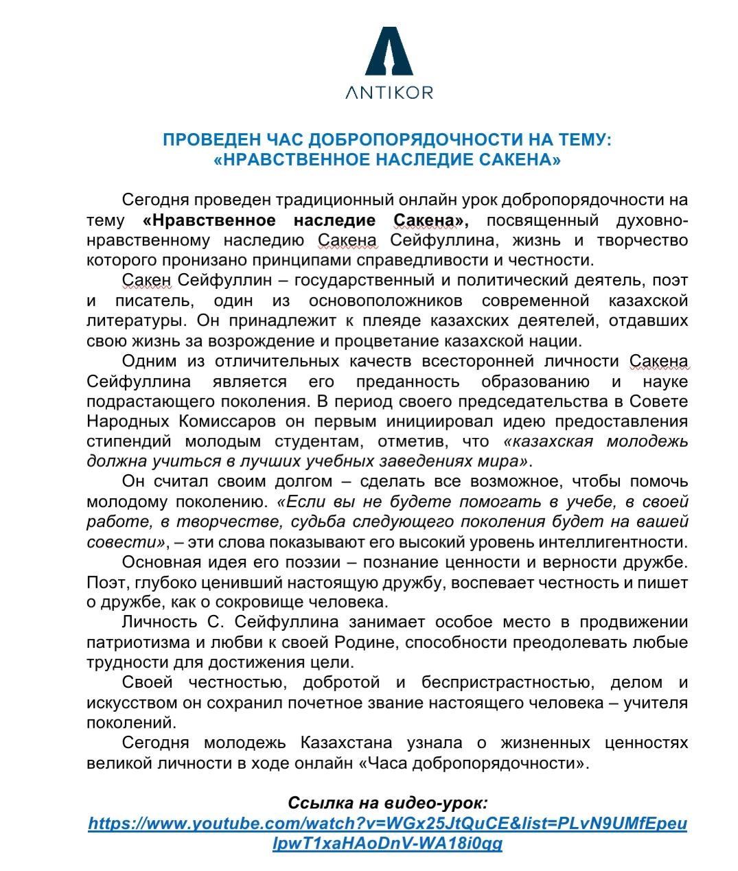 21 декабрь 2020 0 1 2 3 4 5 ПРОВЕДЕН ЧАС ДОБРОПОРЯДОЧНОСТИ НА ТЕМУ: «НРАВСТВЕННОЕ НАСЛЕДИЕ САКЕНА» Осы беттің QR-коды:QR-код этой страницы: