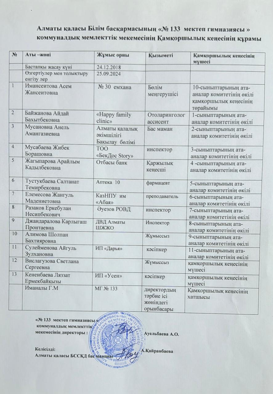 Қамқоршылық кеңесінің хаттамасы