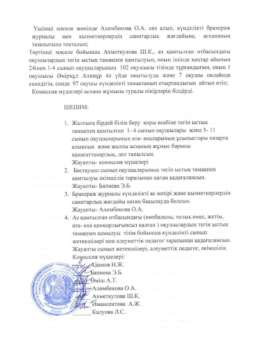 Қабылдау бөлімі :