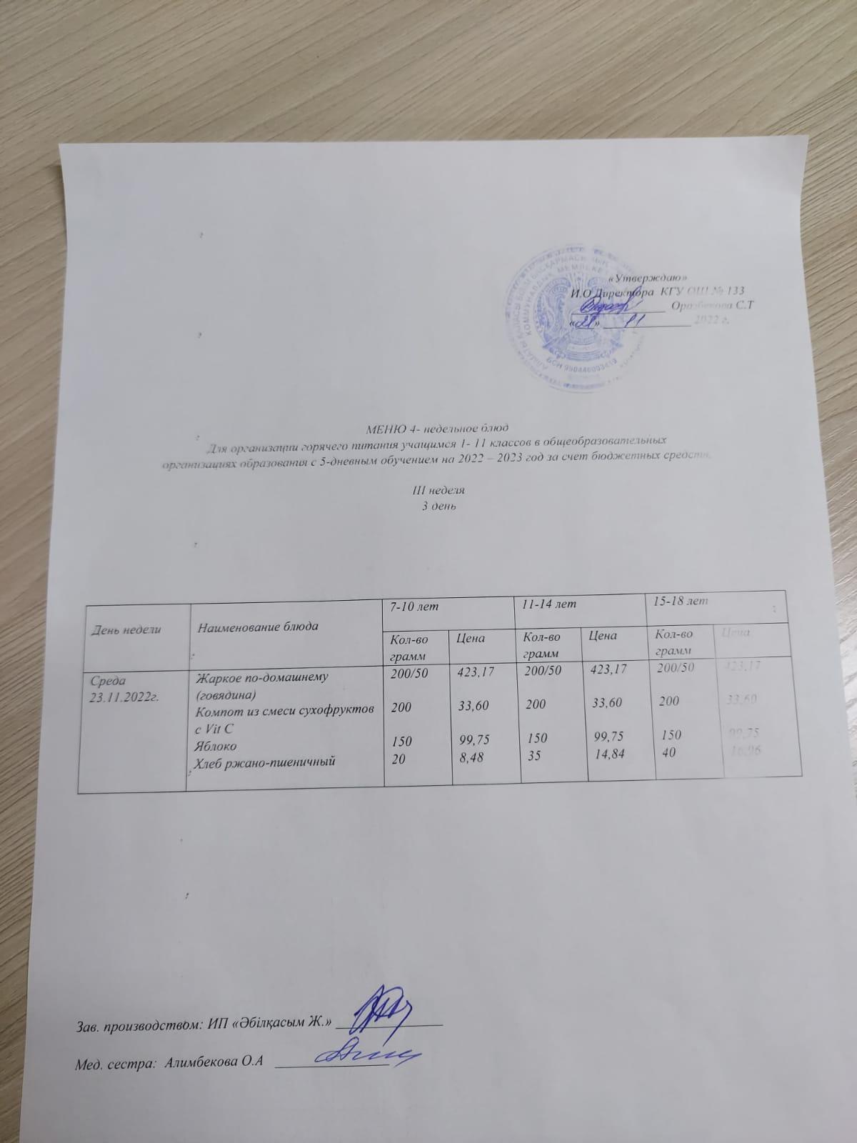 Меню 23.11.2022