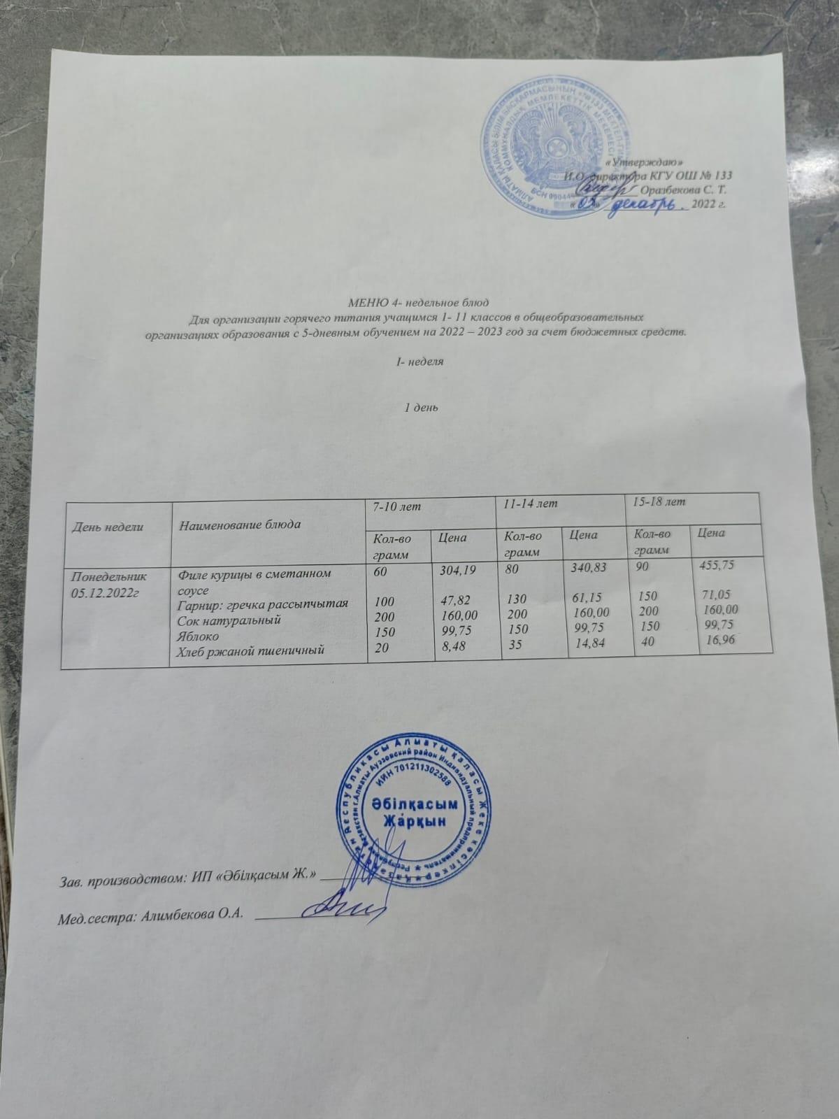 Меню 05.12.2022