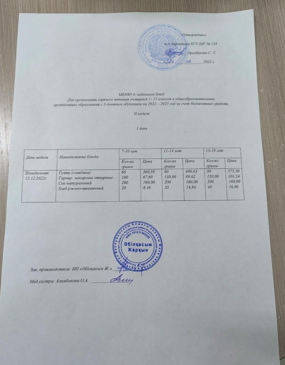 Меню 12.12.2022