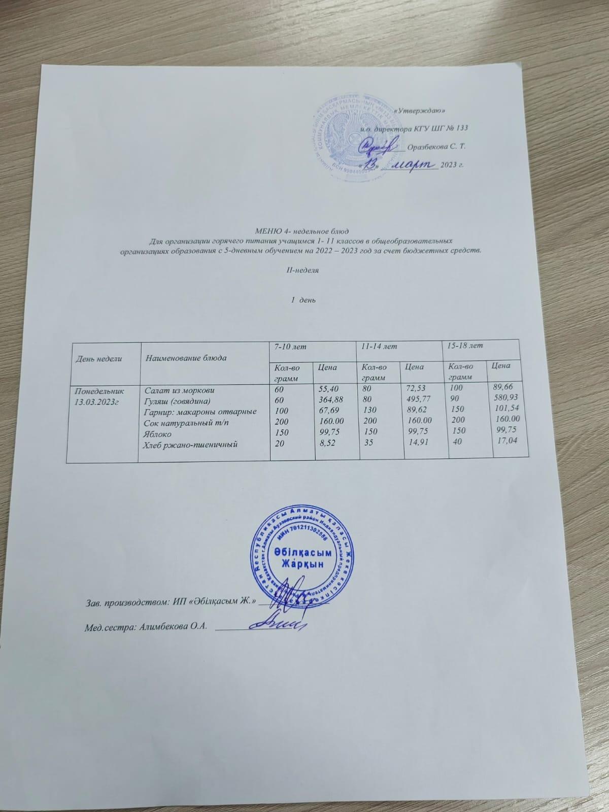 Меню 01.03.2023