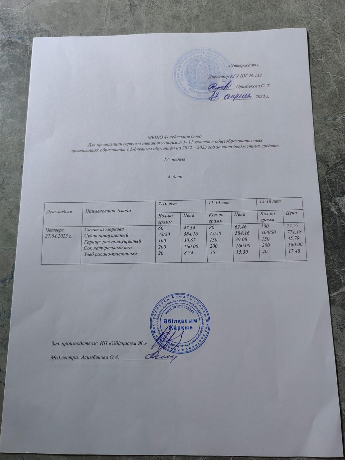 Меню 27.04.2023