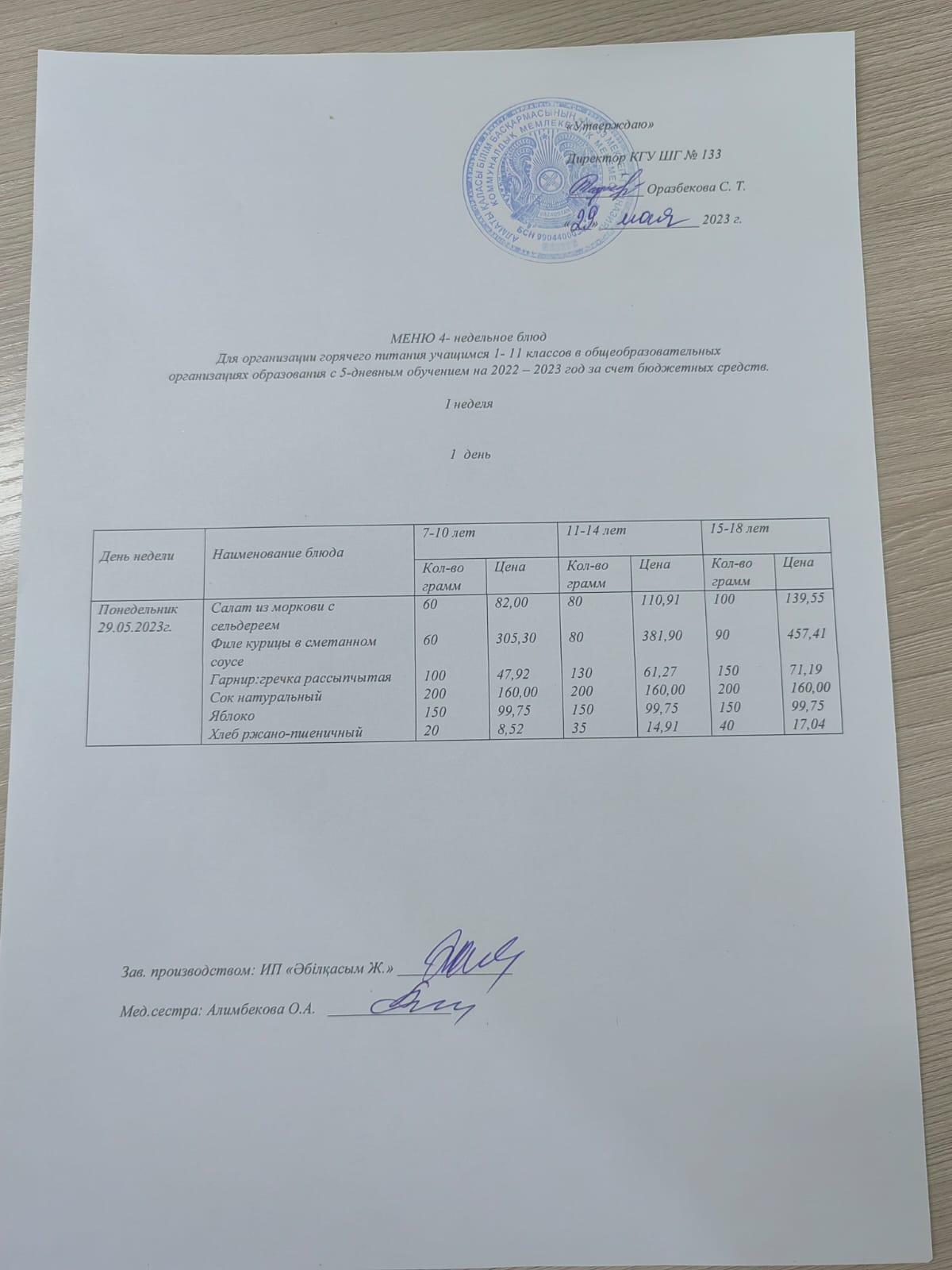 Меню 29.05.2023