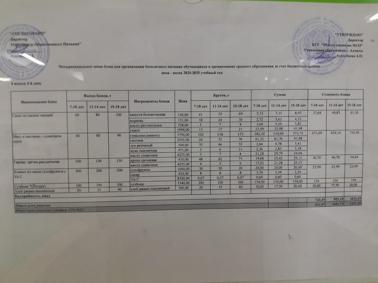 меню 11.02.2025 г