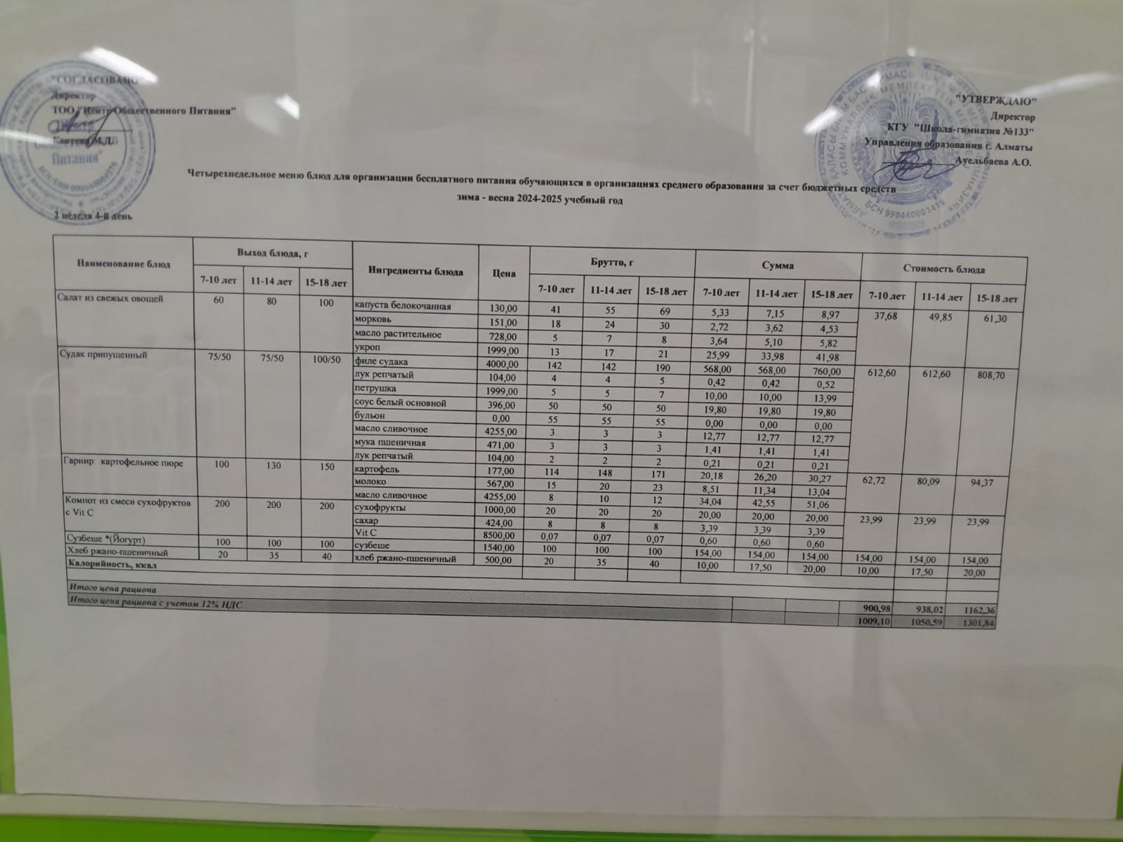 Меню 10.04.2025 г