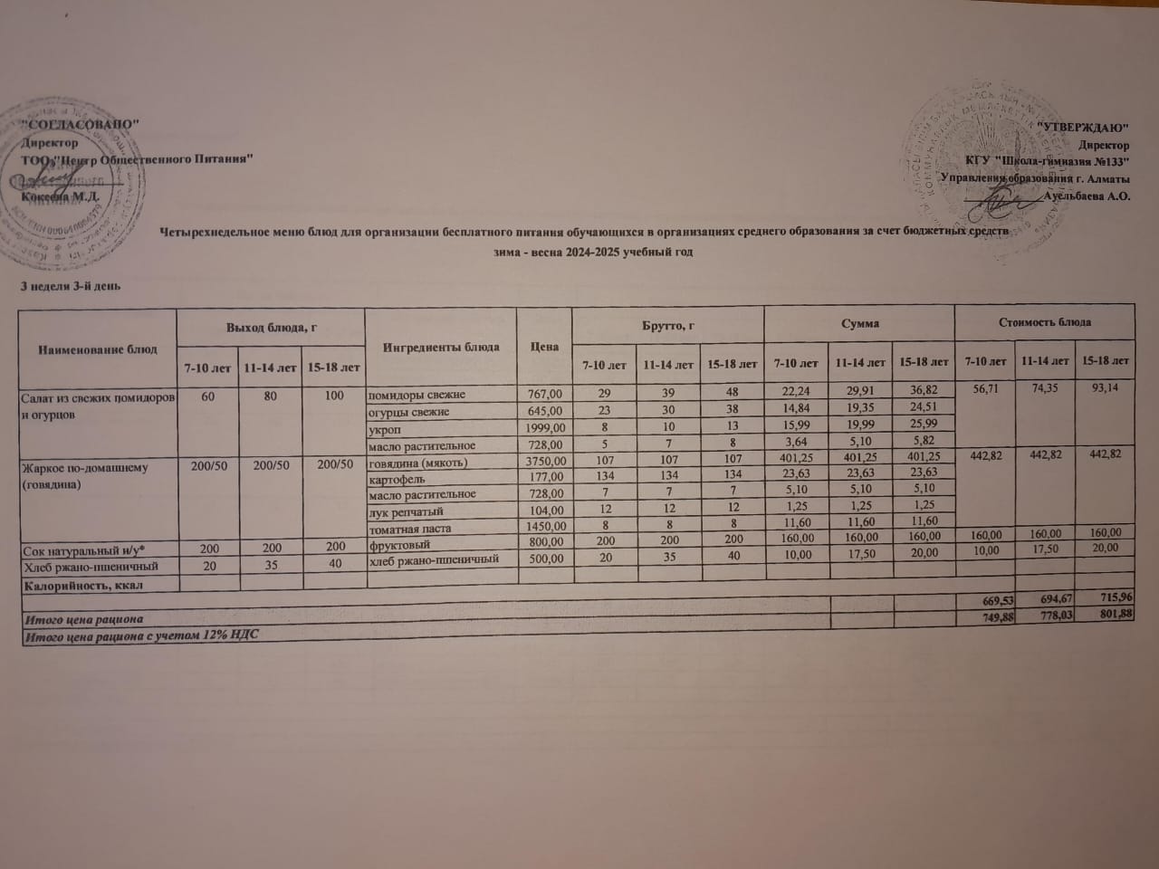 меню 13.02.2025 г