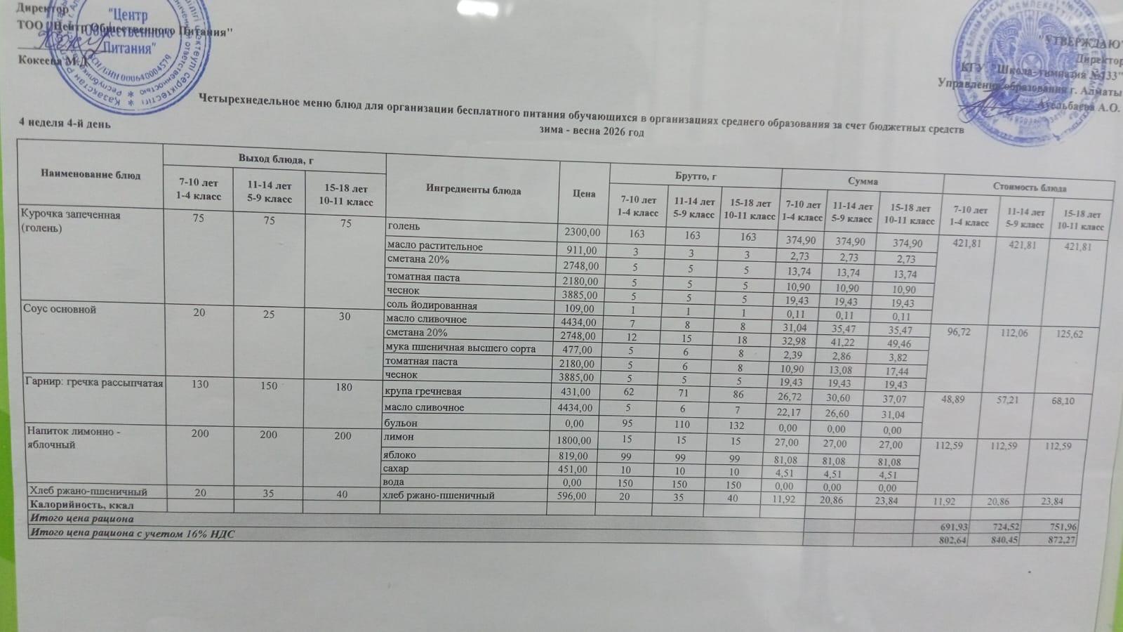 меню 29.01.2026
