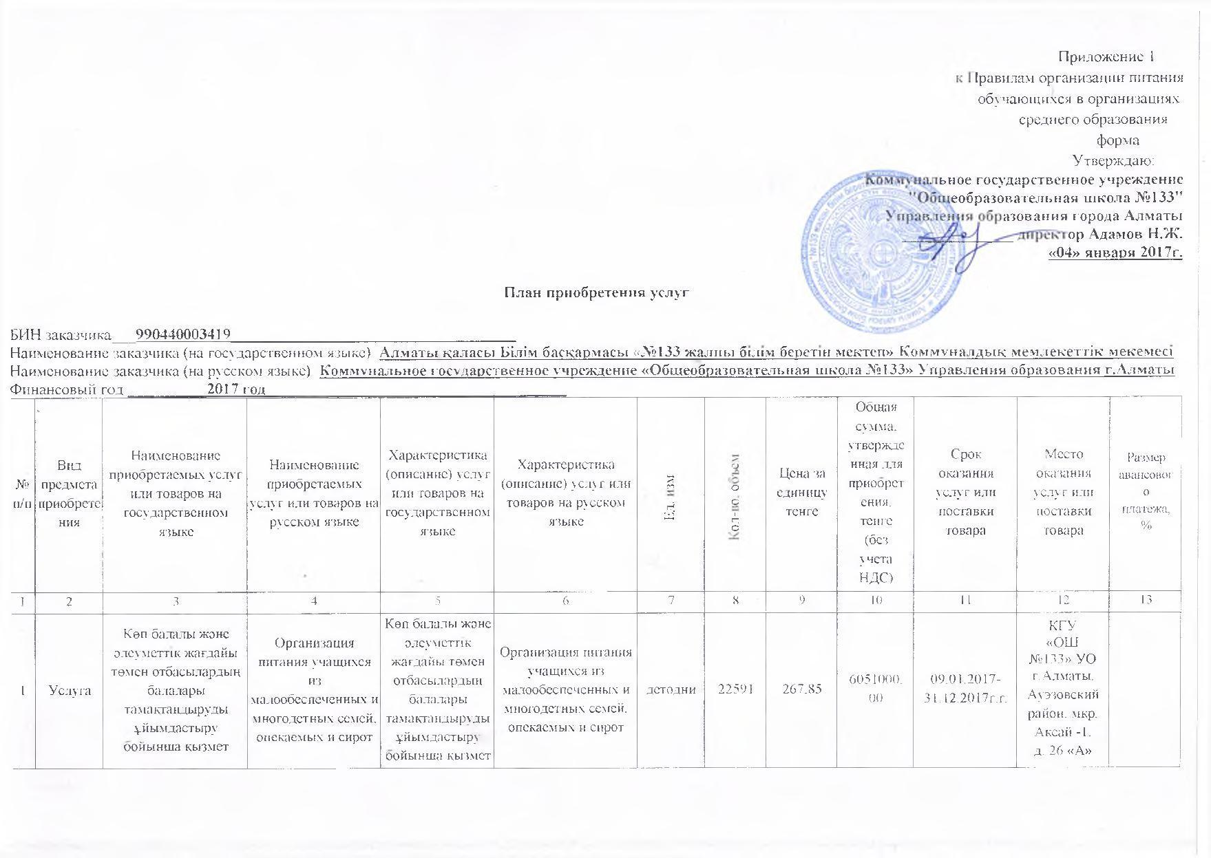 Правила выбора поставщиков услуг по организации питания, обучающихся в организациях среднего образования